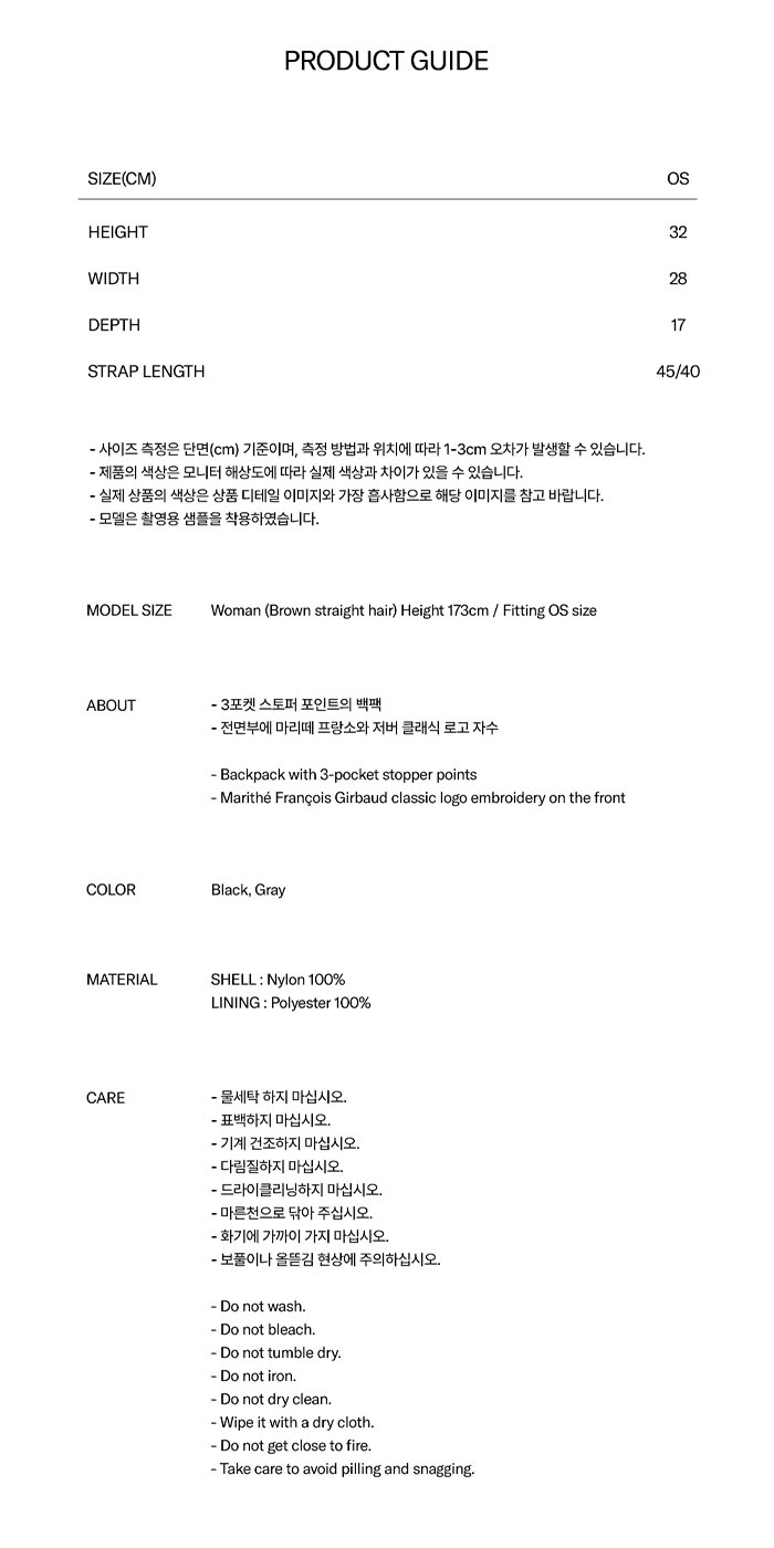 韓國代購🇰🇷 MARITHE FRANCOIS GIRBAUD 後背包 旅行包 mfg [K03082]