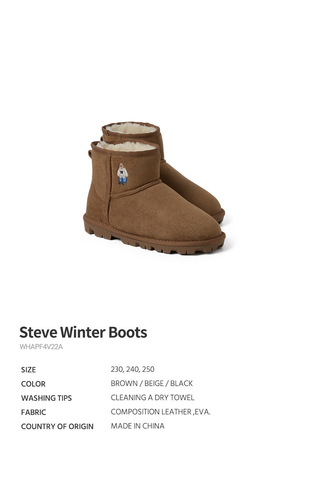 預購 WHO.A.U 小熊 短筒雪靴